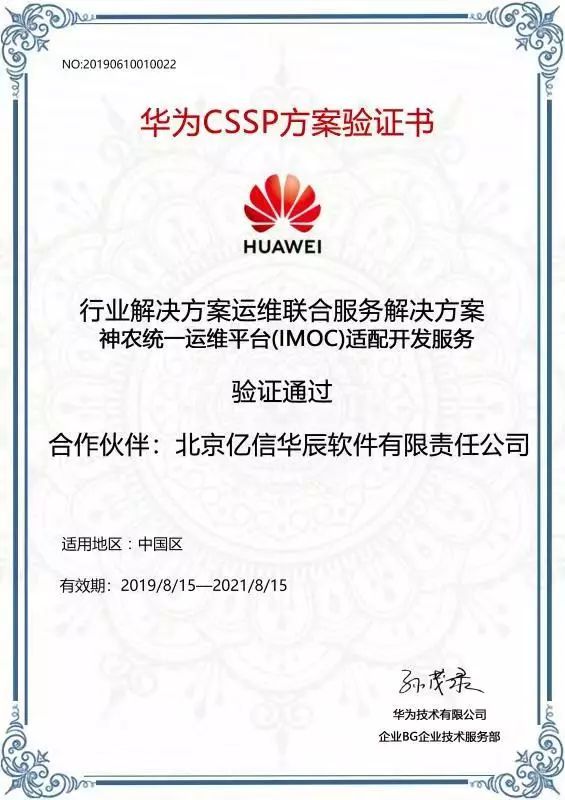 近期,億信華辰還通過華為IMOC適配開發(fā)服務(wù)的CSSP伙伴認(rèn)證。這也意味著我們與華為有了更深入的合作,不僅是產(chǎn)品工具的合作伙伴,同時也是實施開發(fā)服務(wù)的合作伙伴,將來可以在IMOC項目中提供可視化相關(guān)的實施開發(fā)服務(wù)。