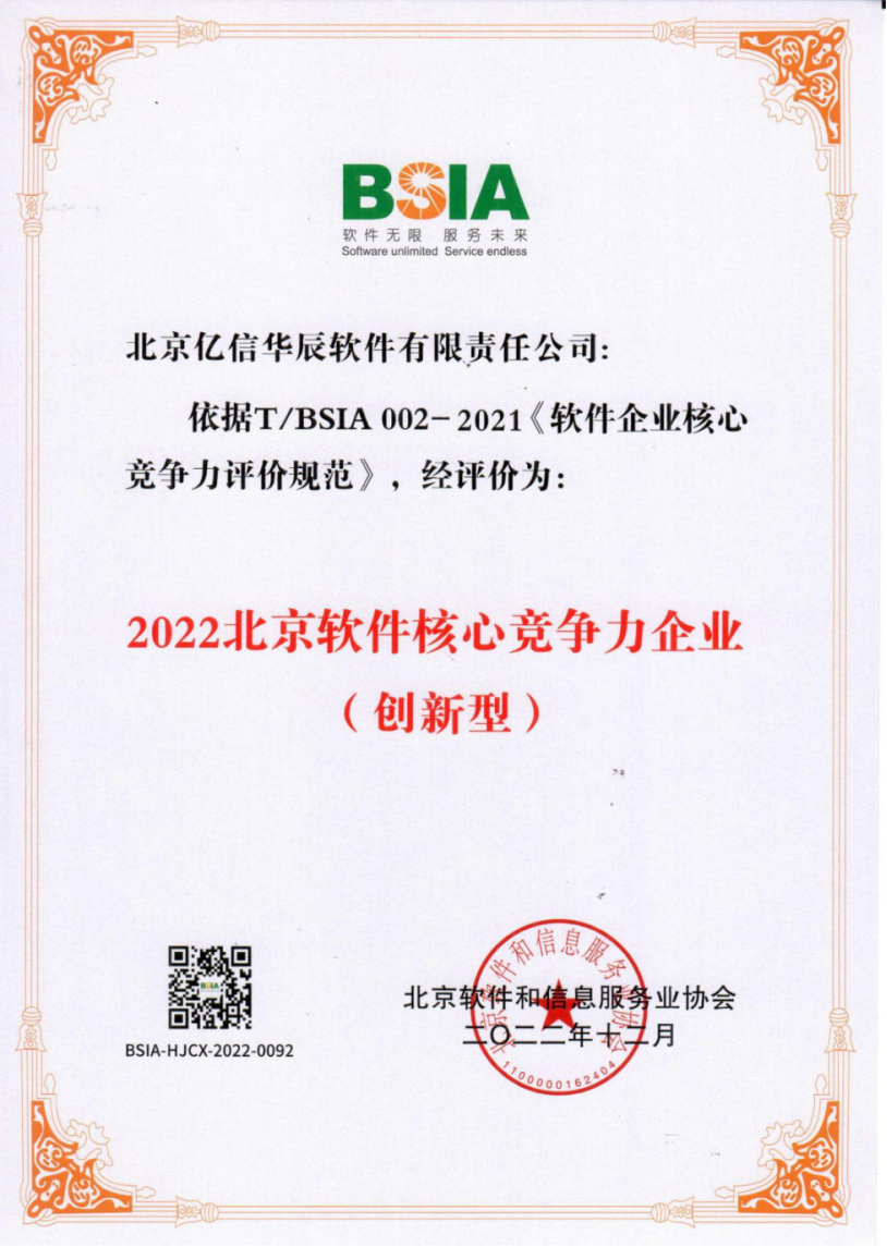 億信華辰再次獲評“北京軟件核心競爭力創新型企業”
