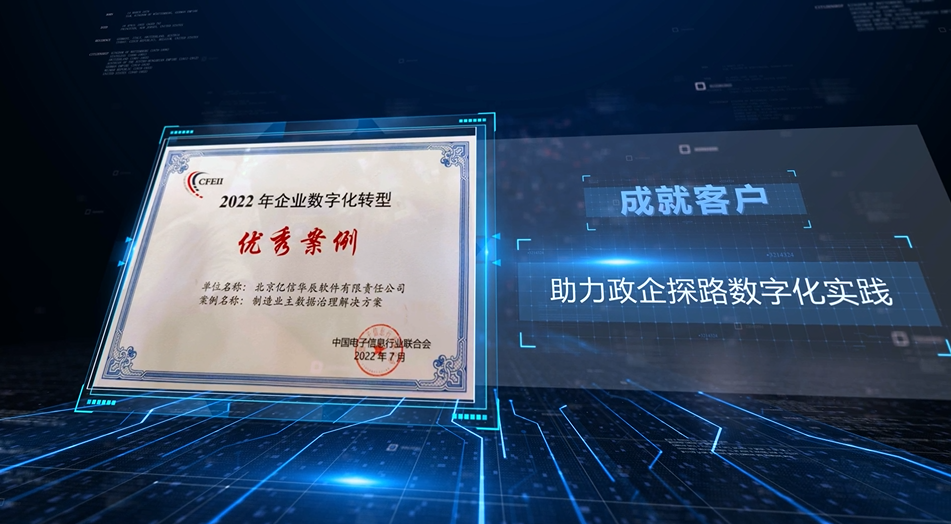 在工信部和廣東省人民政府聯合主辦的2022中國數字經濟創新發展大會的“企業數字化轉型引領制造業高質量發展論壇"上,億信華辰制造業主數據管理解決方案被評為2022年企業數字化轉型優秀案例。