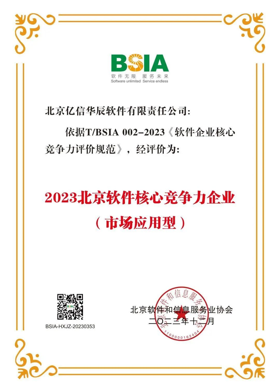 億信華辰第四次榮獲 “2023北京軟件核心競爭力企業(yè)”