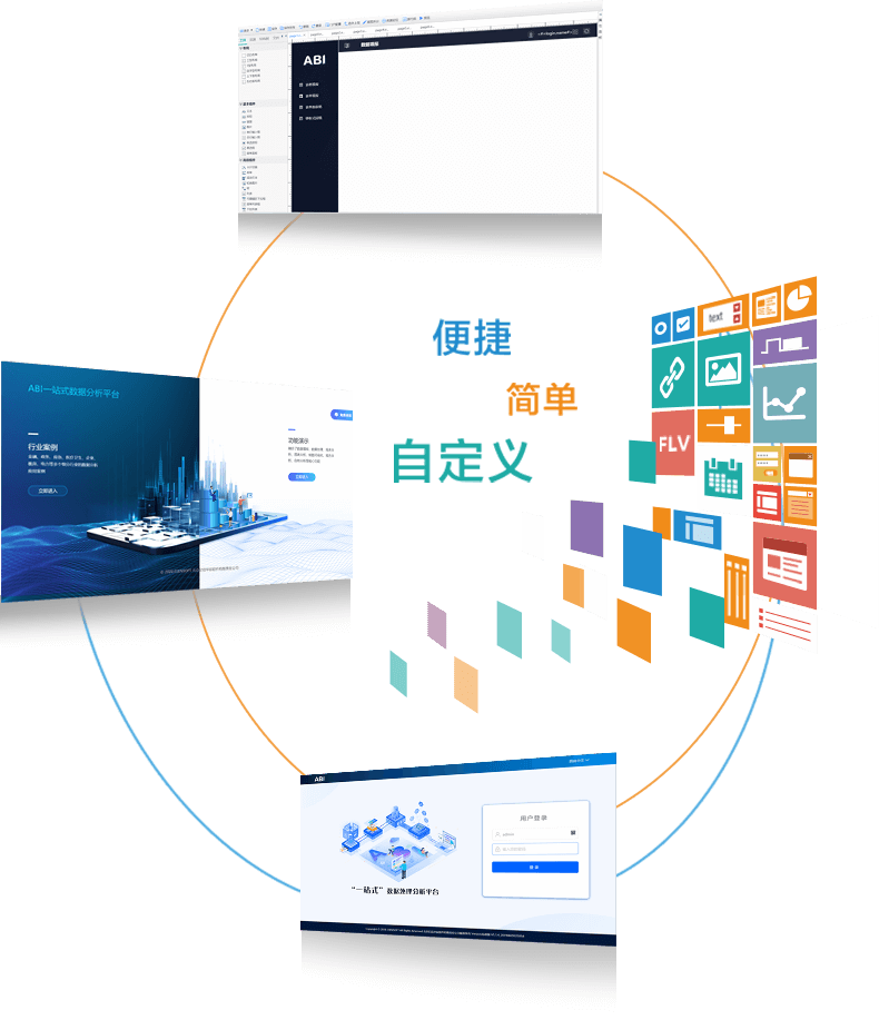 億信ABI內(nèi)含便捷的門戶定義工具,用戶只需通過簡單的拖拉控件到定義門戶區(qū)域,就能自己定義個性化的門戶,能夠簡單實現(xiàn)各種復(fù)雜的自定義門戶,無需開發(fā)人員以及美工介入。